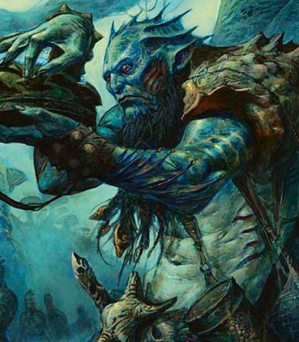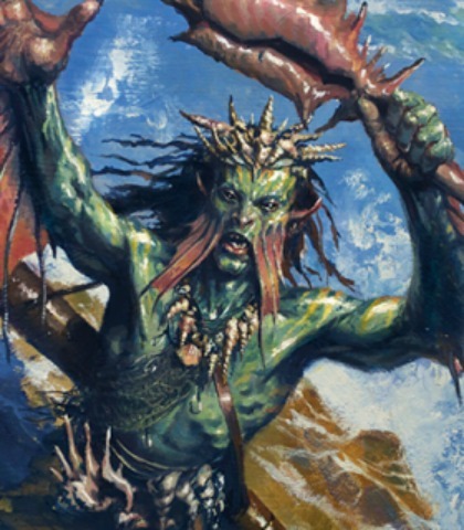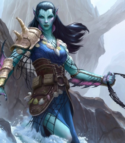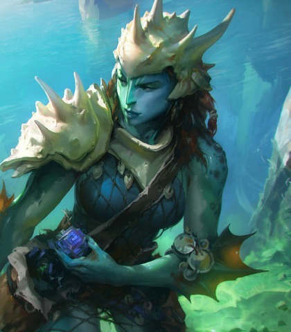 One of the merfolk tricksters who follows Kiora. He is very skeptical and keen to take the power of Thassa’s bident should Kiora fail.