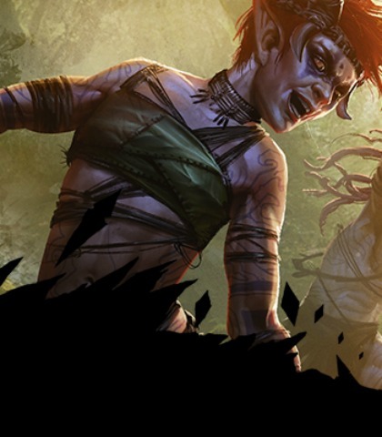 A goblin woman, who finds Jace and saves him from an Eldrazi attack. She’s a bit crazy, probably from grinding up and eating hedrons and other magical rocks, but it has been extremely effective at keeping her alive and powerful. She tells Jace a lot about the properties of hedrons as she leads him to the Eye of Ugin.