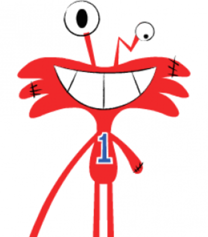 A purple, fury friend that looks like a devil. He can talk in English and Spanish.
