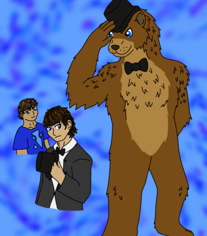 Freddy is most of the time calm and collected. prefer watching a situation from a small distance before going into action, if thrown into a situation without warning, this bear can lose his cool and go into a panic frenzy... which is not helping when the others are often looking to him for leadership. Freddy is very polite and friendly, don't say no to a good joke, so long it doesn't hurt anyone. he is a bit fussy about the restaurant and his own appearance, which his family sometimes makes fun of. he is also quite overprotective and can get pretty aggressive, even straight out violent if someone dares hurt the people he cares about.