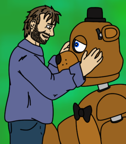 one day he got attacked by the animatronics, but miracles survived and being the first human realizing the animatronics are possessed by the dead children. feeling great pity for the animatronics, Scott takes the role as Freddy, Bonnie, Chica and Foxy's guardian or as they called him: father.