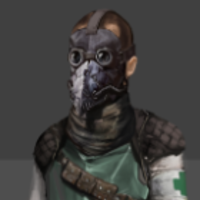Some time back he bumped into a scavenger/ trader named Jerred Lund. Of course by bumped, I mean tried to rob. Jerred caught him in the act, but Shhandy won him over and has been running messages for him ever since. When ‘Mister Jerred’ joined the Forsetis in setting up the Commonwealth Police Department, Shhandy of course became part of it too. He loves the idea of the CPD in a naive comic book way. Beating up the bad guys, saving the day and all that. But is often disappointed by the fact that the grown ups don’t let him join in with the exciting stuff, sending him off with messages instead. To feel part of it, he has picked up bits of uniform/equipment such as a police cap that’s too big for him.