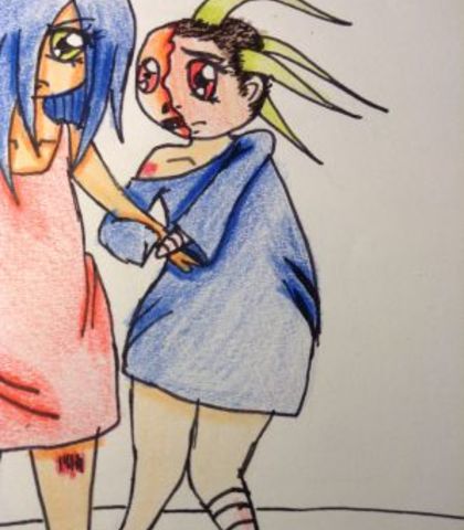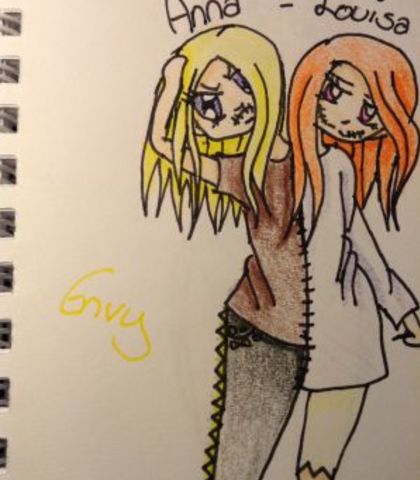 Anna is an angry seventeen year old who is stitched to her twin sister and represents envy.