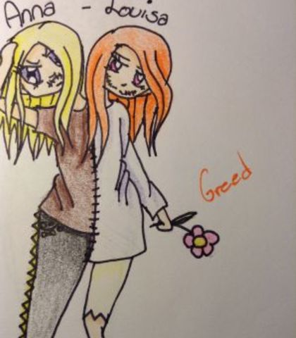 Louisa is a seventeen year old girl who is stitched to her sister and represents Greed.