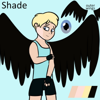 Shade is a relatively innocent kid full of energy. His voice is up to interpretation. Feel free to experiment.