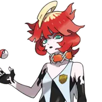 Mela is a student at Naranja Academy, and one of the bosses of Team Star. He specializes in Fire-types. Mela is the team's allrounder, capable of fixing any problem they could come across. Her impression is initially very gruff and standoffish, but she has a lot of personality and fire. Mela's aesthetic was created out of a desire for the other girls at school to leave her alone, as she used to be bullied and picked on for her appearance.