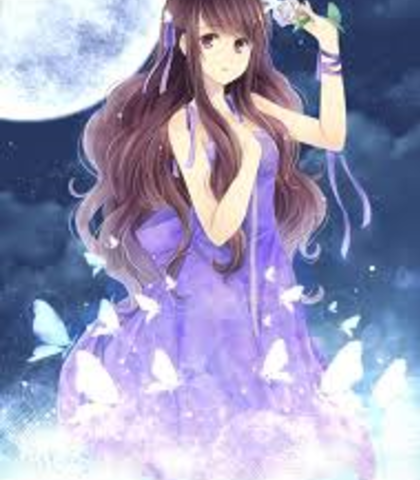 She has long brown hair and wear a purple dress, and carries a Piko Piko Hammer.