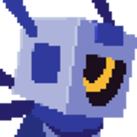 He's a robot that is mostly light blue and dark blue, with the exception of his eye, which is yellow.