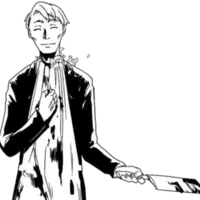 Albert Fish appears as a refined man with eyes closed most of the time and wears a black suit accompanied with a tattered apron befitting his cannibalistic nature as he also brought a knife with him