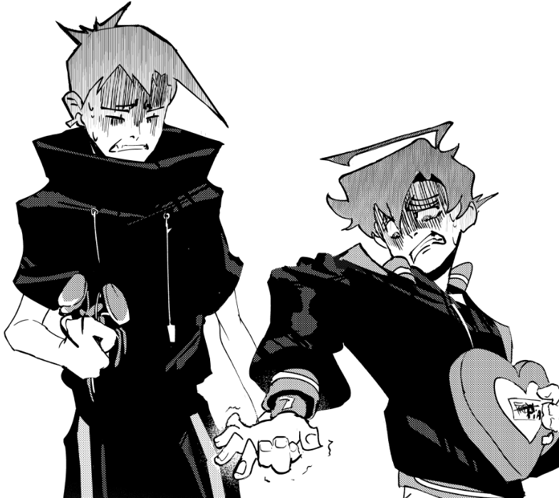In an attempt to get a girl to go to prom with them, Kaj and Lukas have gotten themselves into a high-stakes game of gay chicken. Only one can win, and neither intends to back down. Rage Quit is a Boys Love manga about two regular teenagers with the social skills of a protein-fixated gym bro and a chronically online gamer.