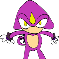 Espio is a member of the Chaotix detective agency, known for his stealth and cunning. He is a skilled martial artist and can use his invisibility to sneak up on enemies. Espio is often seen wearing a purple and yellow outfit, and his design in this image reflects that. He has a serious and focused demeanor, which is fitting for a detective.