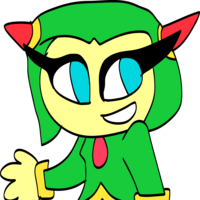 Cosmo is a cheerful and energetic Seedrian with a bright green and yellow color scheme. Her big, expressive eyes sparkle with curiosity and kindness. She has a playful smile and a playful air about her, always ready for an adventure. Her outfit is a mix of cute and practical, with a green jacket and a white skirt with yellow accents.
