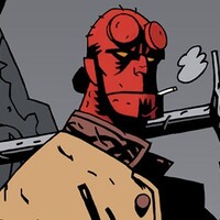 Hellboy, the paranormal investigator. Part of the B.P.R.D. worrying about his impending doom of bringing the rein of hell to earth.