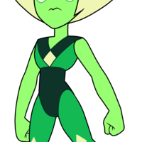 Peridot (specifically Peridot Facet-2F5L Cut-5XG) is a member of the Crystal Gems who made her debut in "Warp Tour". She was originally a Homeworld Gem technician and a certified Kindergartner. After being stranded on Earth following the events of "Jail Break", she acted as a recurring antagonist until becoming more of an anti-hero and pseudo-antagonist by establishing a truce with the Crystal Gems in "When It Rains" to help them save the Earth from the Cluster. She officially became a member of the Crystal Gems in "Message Received" after she defied and insulted her Homeworld superior, Yellow Diamond. For some time she lived in the barn with Lapis Lazuli. However, as of the events of "Raising the Barn", she resides in Steven's bathroom.