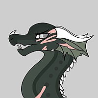 She is a wise and calm dragon, having grown from her past experiences and turning her mistakes into lessons. She is very tranquil and laid back and goes with the flow of life, standing back up when someone pushes her down and enjoying the good times as they last. MistThicket is a dark green Rainwing with wings and a ruff the color of mist.