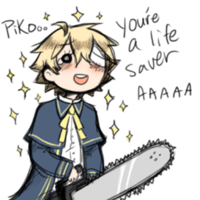 *Reporter asks where Oliver got a chainsaw* Piko-san gave me it to defend myself from Rin and Miku's pussy armies.