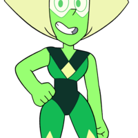 Peridot was formerly a Homeworld Gem, but now she lives in the barn with Lapis. She is very enthusiastic, and she has a very nasally voice.