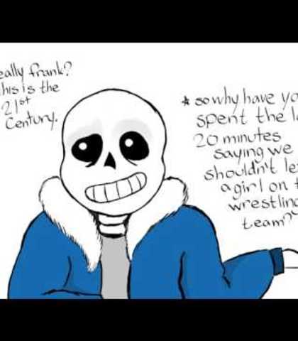 Sans is a skeleton dealing with the drama of the PTA...he is a good guy, but you DO NOT want to get on his bad side when it comes to his family. His voice is low and usually chill, but gruff when he is ANGRY.