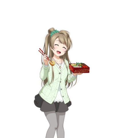 Minami Kotori is one of the nine main characters in Love Live!. She is 16 years old and a second year in Otonokizaka High School. She is also known as "Legendary Maid Minalinsky" while working in Akihabara. Kotori was born on September 12. She has grayish-brown hair, normally styled in a way where part of her hair is tied up in a small chignon bun and she has amber eyes. Her main color is gray, though she is commonly shown in green. She is part of Printemps, a mini idol unit. Her solo album is called "Kotori, Lovin' You".