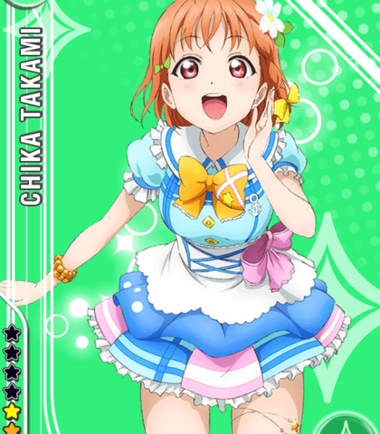 Chika has a very energetic and peppy voice. It is a lot like Honoka's, but kind of in a younger way. Anywhere from mid-range to mid-high will work for her.