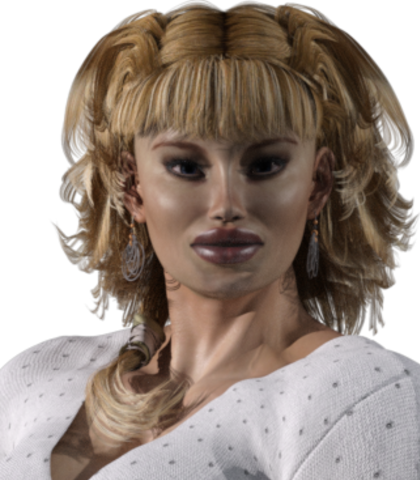 Increasa is a volatile gentle giantess. The player can let her grow up to 100m (330 feet) stepwise. At normal size she is a little submissive, in grown state she mentally hovers very confidently above the situation with some humour.
