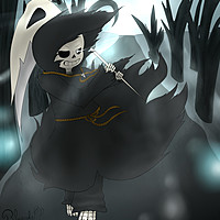 Reaper is the sans of Reapertale, acting as the god of death alongside his brother and reaping souls with the long silver blade of his scythe he carries with him. Heck, Reaper isn't even walking, he floats. Reaper is a bit of a flirt when it comes to Geno, determined to one day get Geno to admit he loves him, but in the meantime more flirting. And taking care of Goth and Raven. While Raven doesn't seem much for a conversation Goth talks with Reaper often and they can find time to chat when he has his days off. Other than a flirt, Reaper is also a member of the Star Council and he can get a bit moody when it comes to battle. Afterall, the curse of killing anybody by touching someone does have its downfalls. Reaper doesn't really like his job, but deals with it anyways