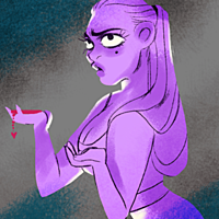 Aphrodite iis the goddess of love and mother of Eros. She is depicted as a purple woman with a keen fashion sense. Ares and Aphrodite have an open relationship.