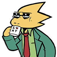 Alphys is a tired teacher who is just trying her hardest. She speaks in a slightly low and exhausted tone. The only thing keeping her running is straight black coffee from a coffee shop down the block.