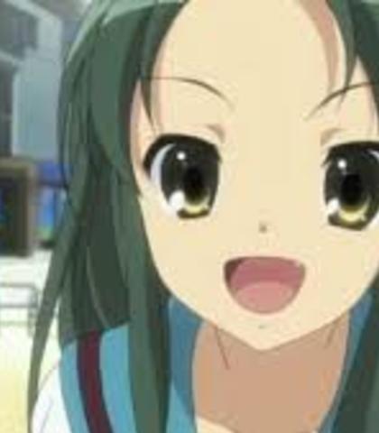Tsuruya is the hyperactive friend of Mikuru. She goes through intense laughter at things she feels slightly humorous and has a noticeably loud voice. She tends to join the SOS Brigade when they need more people for activites. Her voice is medium level for a teen, but kind of obnoxious sounding. Try your own take or listen to Kari Wahlgren's for inspiration.