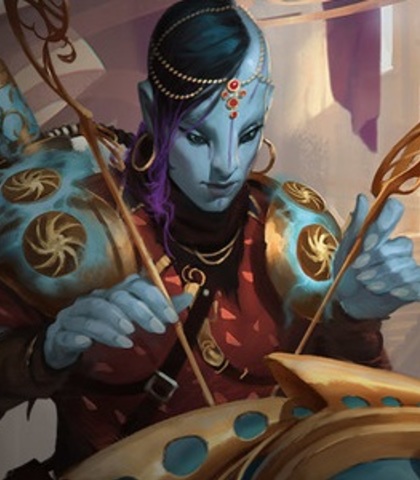 A young vedalken who is clearly starstruck by Shadowblayde. He is excited to see her, but also wants to respect her. Vedalken speech is typically clipped and brusk. These are his only lines.