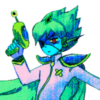 CAPTAIN SPACEBOY, also known as SPACE (EX-)BOYFRIEND, is a major boss character in OMORI. He is the leader of the SPACE PIRATES that traverse throughout the galaxies and a major antagonist in the game. He possesses a green-colored space gun that shoots out laser beams and is used to fight against any opponent he encounters.