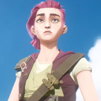 Violet, mostly known as Vi, is a young fighter from the city of Zaun, the older sister of Powder and the adoptive daughter of Vander. Characterised by her hot-headed and brash personality, she never holds back during a fight. Vi, however, also treasures those close to her, and is very protective of them.