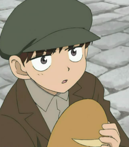Alain is an orphan who lives on the streets together with his younger brother and sister. In the first episode he tries to steal a loaf of bread to feed his siblings.