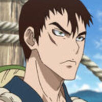 Kinro (金キン狼ロー Kinrō) is the elder brother of Ginro and the son of Tetsuken and Shirogane. Originally having served as one of the guards of Ishigami Village alongside Ginro[10], he quickly joined Senku as a member of the Kingdom of Science, serving as part of the Power Team's Defense Division.