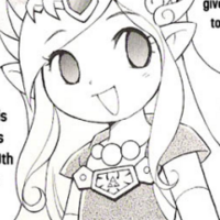 Zelda is the young, bouncy princess of Hyrule. She is somewhat naīve and ditsy, possibly due to her being portrayed as a young girl. When the Picori Festival comes, she wants nothing more than to have Link accompany her. Like any princess, her voice is soft and cute. Also it's pronounced (Pi-Corey)