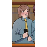 Une jeune femme travaillant pour le thon, et fangirl face à la personne qui vient chercher Min.