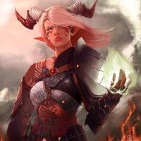 An albino Tiefling from a far away land, she turned away from dark past and evil destiny to become a cleric in the name of justice. She has become best-friends with Keanu, an unlikely, but strong friendship.