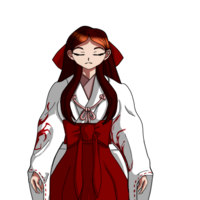 A shrine maiden who is strict and stoic, but has a kinder side.
