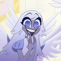 "Hi! I'm Emily, the other seraphim, though you can call me Em! Emmy, E, whatever you want, I go by whatever. *giggles* Welcome to Heaven!"
