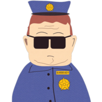 Officer Barbrady is South Park's former main police officer, with relatively poor vocabulary. He is extremely incompetent at his job, usually being incapable of solving the crimes he is legally obliged to investigate. Despite this, he does manage to maintain the balance of peace in South Park as shown in "Chickenlover" when, shortly after he retired, the city fell into chaos. In "Naughty Ninjas", he was fired from his job as a police officer for shooting an unarmed 6-year-old Latino boy. Following that, he was temporarily reinstated to combat ISIS in "SoDoSoPa". However, he was fired yet again for shooting children playing ninjas. He was reinstated from his police officer job in the time between "PC Principal Final Justice" and "Splatty Tomato", likely due to him tracking down Leslie Meyers. While Barbrady is, like almost all adults in South Park, extremely stupid in general and largely incompetent at his job, he is one of the few characters who is never shown as financially corrupt or sexually deviant. He maintains a monogamous relationship with a consenting adult partner throughout the series, one of the few fully developed characters to do so.