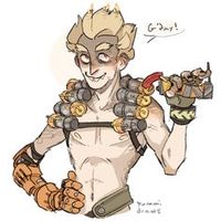 Junkrat is a usually cheerful, colorful character. He's an Australian bomber whom has a history of stealing and being wanted in many states. His bodyguard is Roadhog.