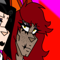 A fluffy red haired fox with yellow eyes and freckles apon darker latino skin. He's strong, maternal(lol this is a running joke in the series), and funny, he has a good heart and loves his friends dearly.