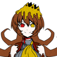 Miley has long brown hair that flips at the end that frames her face. She has heterochromatic eyes, right red and left yellow. Miley's outfit gives the overall impression of sweets. She wears a gray shirt under her brown dress and a yellow kerchief. The bodice looks like melting chocolate and her long gloves match, though they look like they were dipped in yellow icing. Her puffed-up skirt is two-layered; the top layer being red and the bottom brown. She has a yellow ribbon loosely tied around her waist and a red ribbon around her neck. On her head, tipped slightly to the side, is a yellow melting crown with three brown dots near the tips.