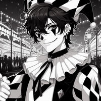 The sole character we wish to voice! Darius is a jester and a ringleader. He wears black and white harlequin clothes with a matching hat and a spade tattooed over one eye. He's extravagant, sultry, insane, talented, a touch outwardly-arrogant (he's quite insecure, actually). He speaks with a lower voice but not one that's too deep. It's adorned with him elongating certain words, practically purring in some lines, and a bit of an accent that I have a hard time placing (I do my own voice for him, so it can be a bit hard to describe!). Feel free to get creative with him and present him in a way that feels best for you! He does go through a redemption arc, so he has some evil lines and some nice ones.