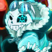 Sans is almost indistinguishable from the original, but now he wears a pair of goggles over his head and instead of his dark blue jacket wears a light blue or teal winter coat with fluffy hood and sleeves. He wears a pair of trainers and the laces always seem to be undone and has black fingerless gloves. In battle, unlike the original Sans' blue-yellow left eye, it is replaced by a blue clock resemblinig eye. In this universe sans can time travel using what Gaster calls 'time portals' and often uses it to his advantage although he has said he just wants to be normal. He's a lot more reluctant than his Undertale counterpart to fight the human on a genocide run. He often fights with Error!sans (Errortale) as he causes problems for him and tries to save those caught in his webs.