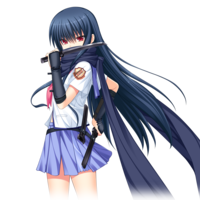 Shiina is a ninja and is able to sense when danger is coming. Despite her dark and mysterious demeanor, she has a weakness for cute stuff such as animals. She is strict and serious and is very self-critical when she fails. She decides that her weakness is poor concentration. She doesn't speak often but when she does it's usually remarks such as "how shallow-minded" or "how foolish" (this is so stupid, things like that). She fights with dual Koadachi & Shuriken.