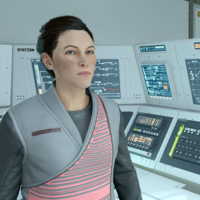 During the events of this quest mod, Kaia experiences a wide range of emotions. When the player meets her for the first time, she is professional and confident. As the quest unfolds, she accompanies the player as a temporary companion and is involved in combat situations, which is highly stressful for her. This involves a handful of lines that are shouting, or near-shouting, such as warning the player of an incoming grenade, taunting enemies, or getting hit by bullets. Near the end of the quest, she can potentially experience grief due to the loss of a friend, and possibly anger, depending on how the player reacts to her loss.