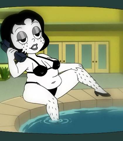 An overweight sex symbol from the 1920s who demands to be the center of attention, cuts herself with razor blades when depressed, and often instigates conflict in the house. She is based on Betty Boop. Most of her humor revolves around her unattractiveness (especially her weight), her gluttony, or her frequent bouts of psychosis and alcoholism.