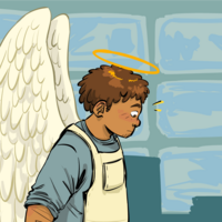 Vernon is an adult angel, and should sound in his late 30s to 40s. He is a very fatherly figure, and extremely kindhearted. I imagine him with a very calm and comforting -but still genuine- voice. Like he sounds like that without trying. Vernon also has a strong sense of justice, and will need to sound stern or quietly angry at some points.