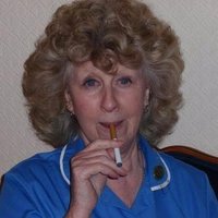 Her voice is deep and gravelly from heavy smoking and she sounds very disgruntled and sarcastic. Nothing really phases her anymore these days.